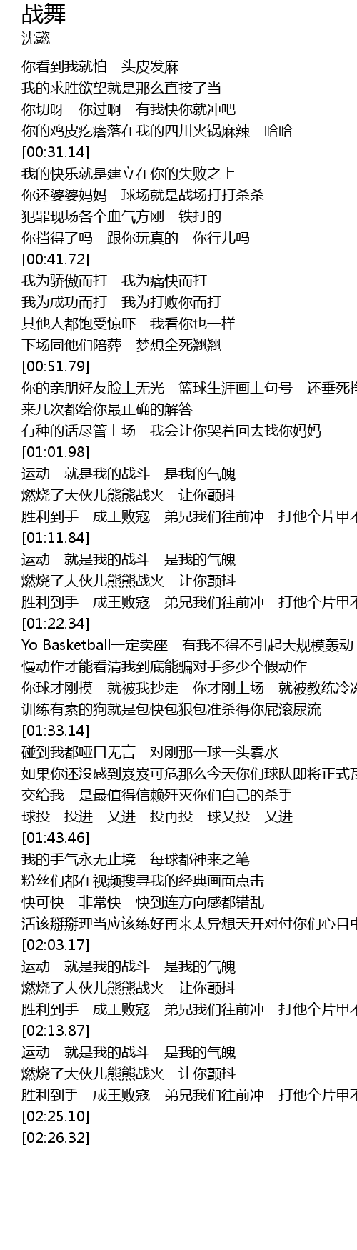 | [02:14.13] | 运动 就是我的战斗 是我的气魄 |