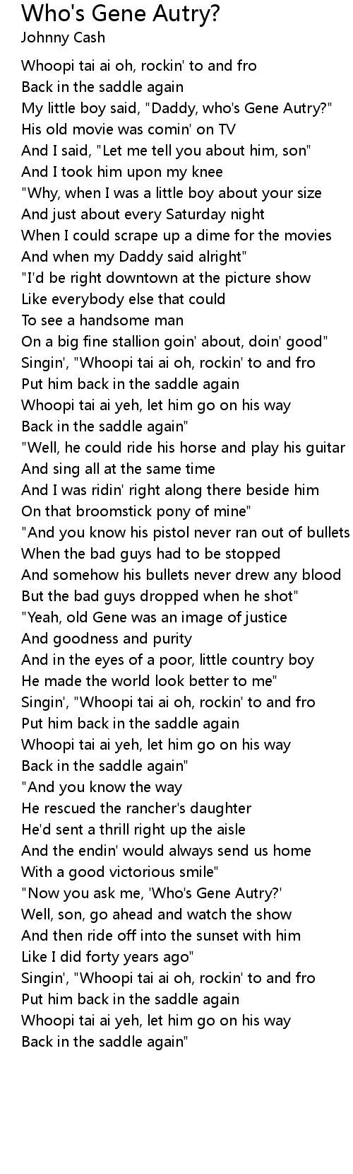 My little boy said, "Daddy, who's Gene Autry?" |