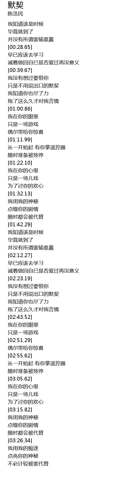 | [02:28.63] | 只是不用说出口的默契 |