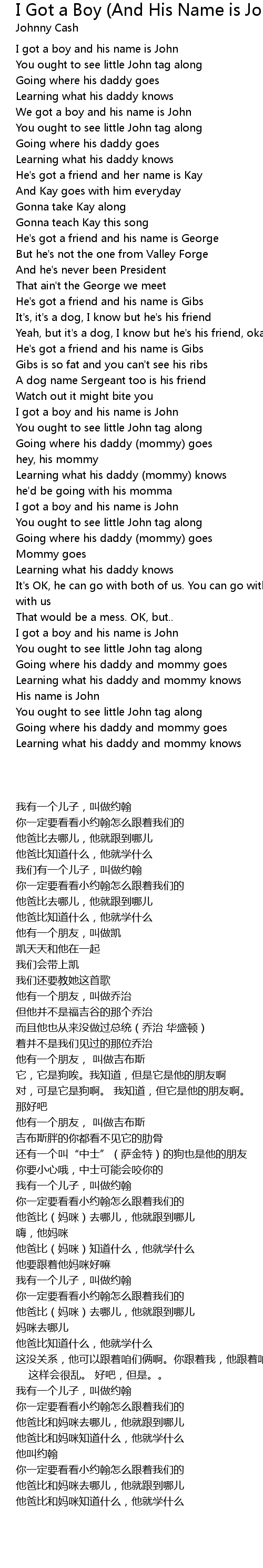 I got a boy and his name is John |