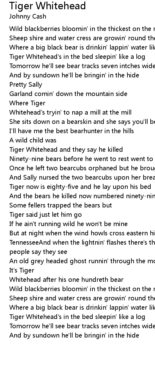 Tiger now is eighty-five and he lay upon his bed |