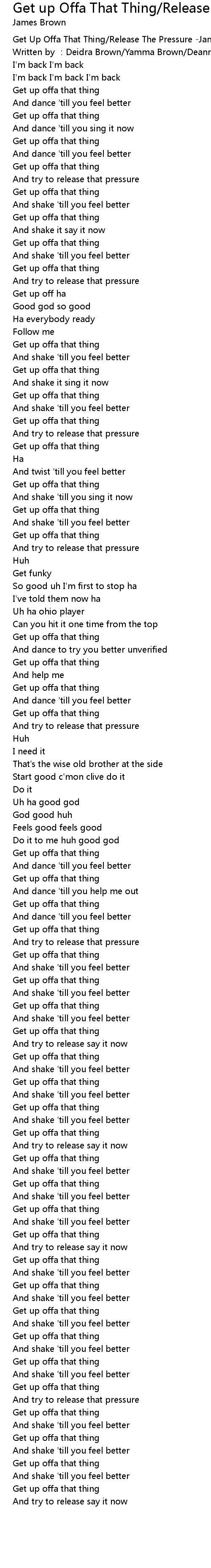 | [00:00.137] | Get Up Offa That Thing Release The Pressure James Brown |