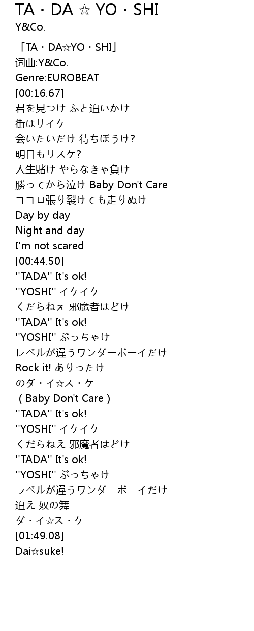| [00:06.95] | 「TA・DA☆YO・SHI」 |