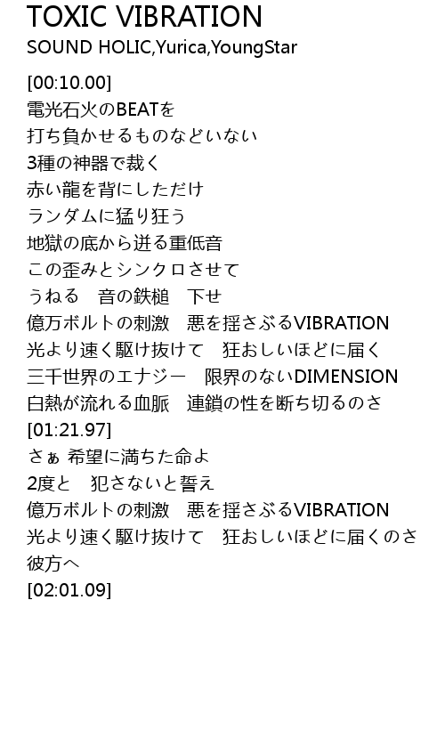 | [00:59.81] | 億万ボルトの刺激 悪を揺さぶるVIBRATION |