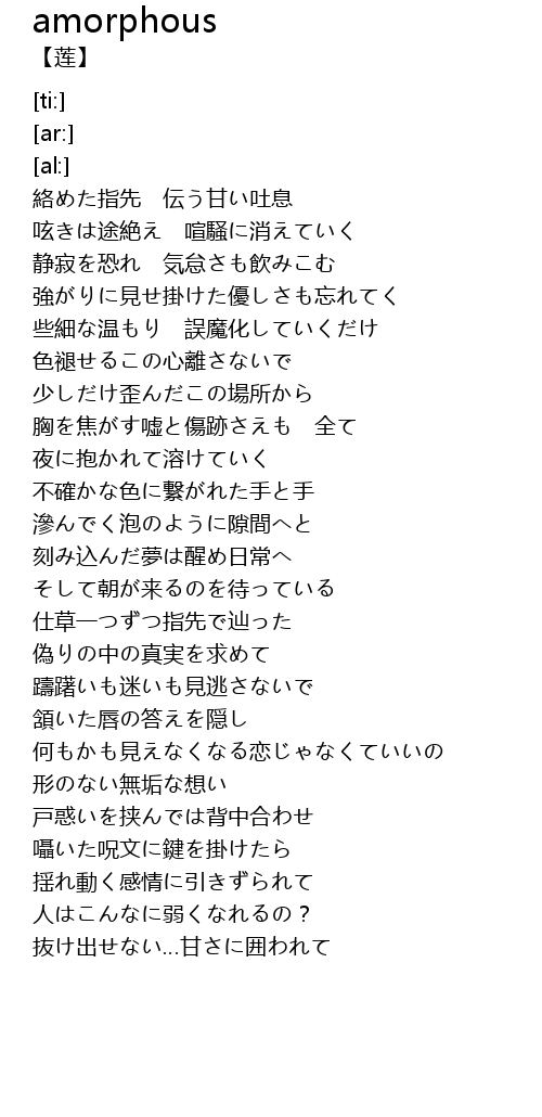 | [03:44.50] | 抜け出せない…甘さに囲われて |