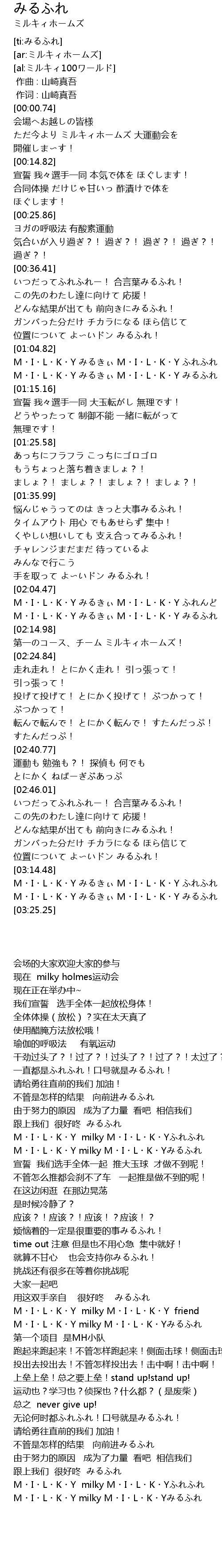 | [03:14.95] | M・I・L・K・Y みるきぃ M・I・L・K・Y ふれふれ |