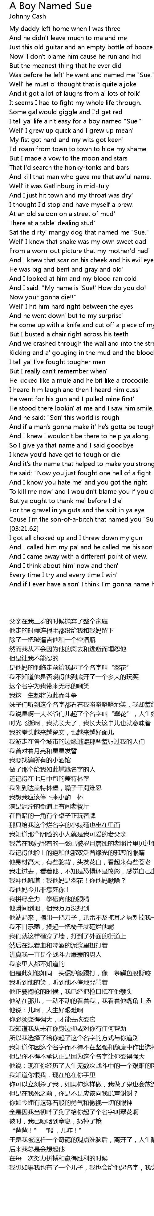 Cause I'm the son-of-a-bitch that named you "Sue.'" |