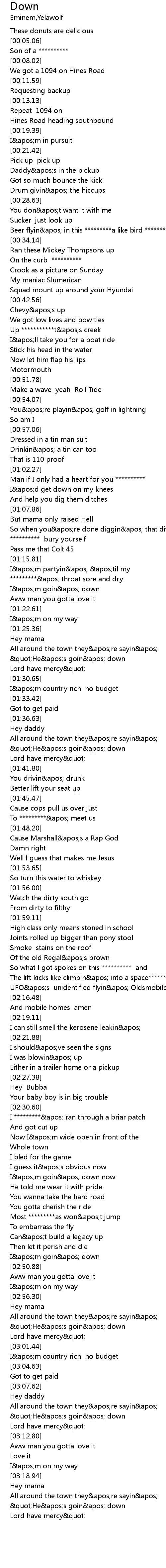 | [01:43.57] | You drivin' drunk |