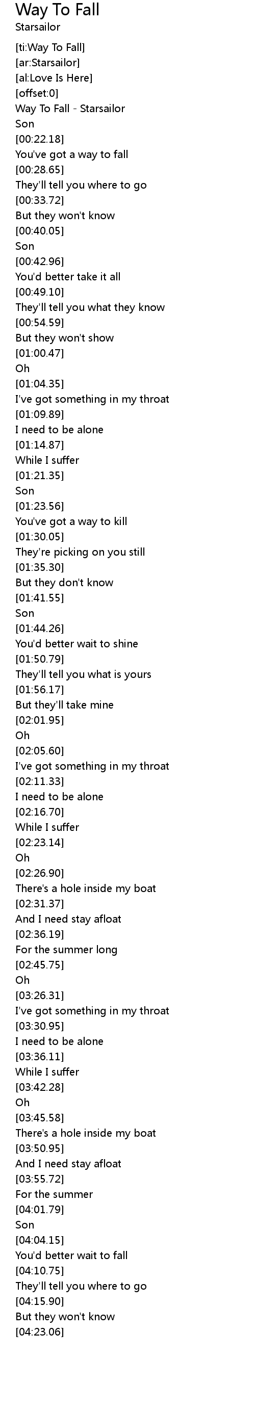 [00:00.96] Way To Fall - Starsailor