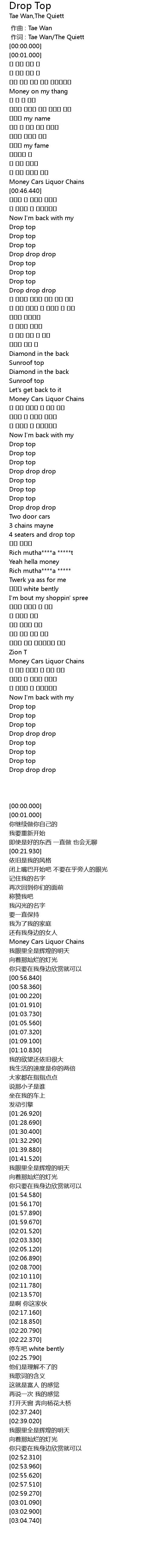 | [00:00.00] | 作词 : Tae Wan/The Quiett |