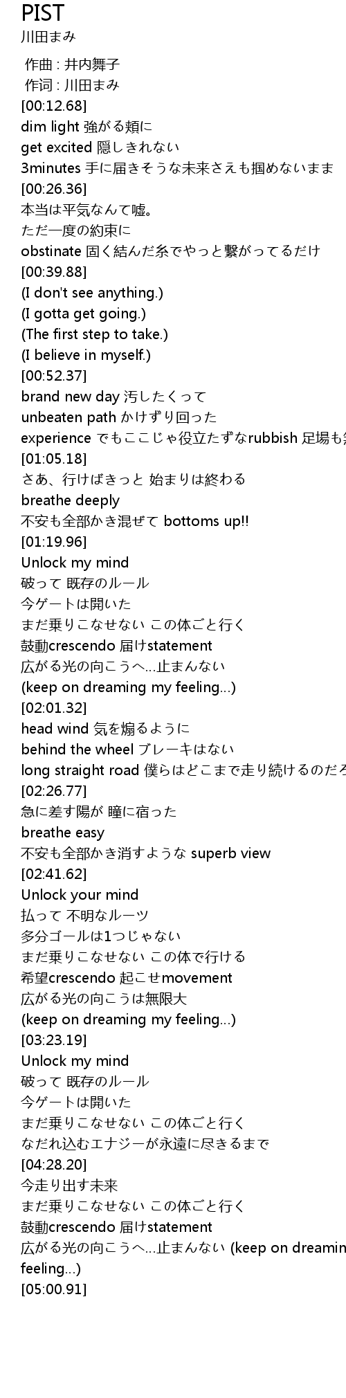 | [00:01.00] | 作词 : 川田まみ |