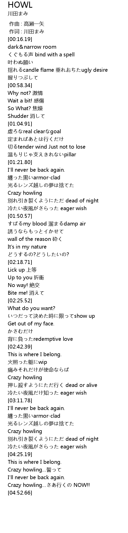 | [04:45.10] | Crazy howling xíng NOW!! |