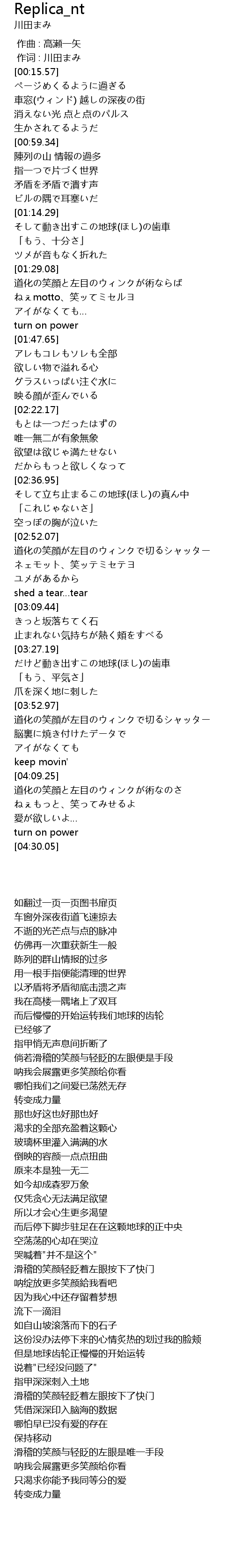 | [01:14.76] | そして動き出すこの地球(ほし)の歯車 |