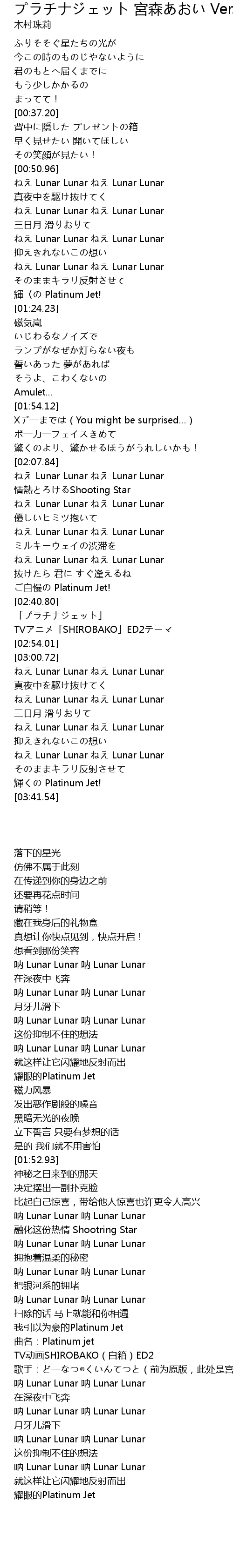 | [02:37.55] | ご自慢の Platinum Jet! |