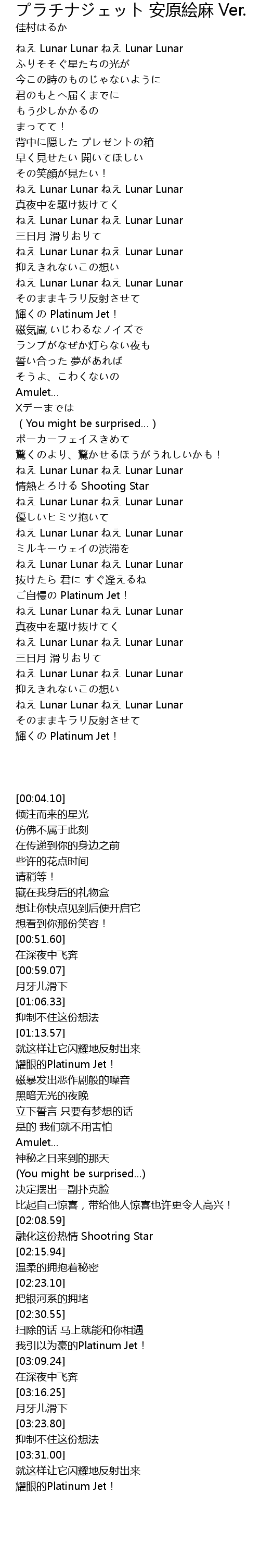 | [00:04.10] | ねえ Lunar Lunar ねえ Lunar Lunar |