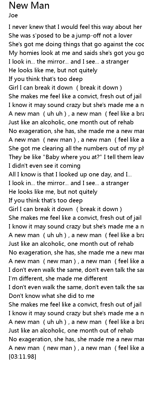 | [00:59.21] | A new man (uh uh), a new man (feel like a brand new man, oh) |