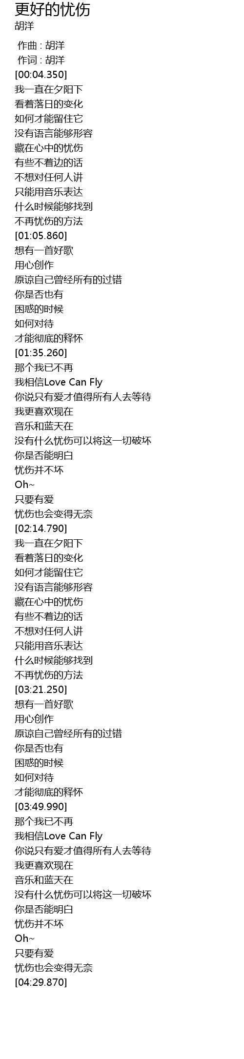 | [04:16.720] | yōu shāng bìng bù huài |