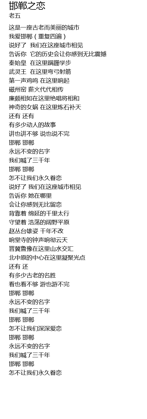 | [00:15.19] | 我爱邯郸(重复四遍) |
