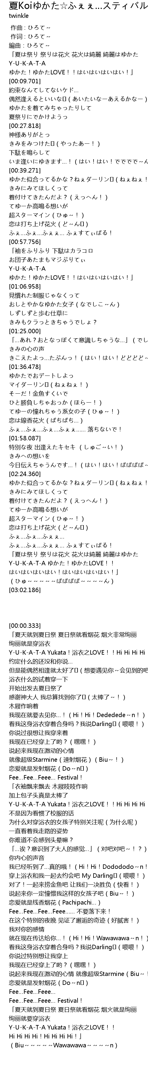 | [02:49.898] | Y-U-K-A-T-A ゆかた!ゆかたLOVE!! |