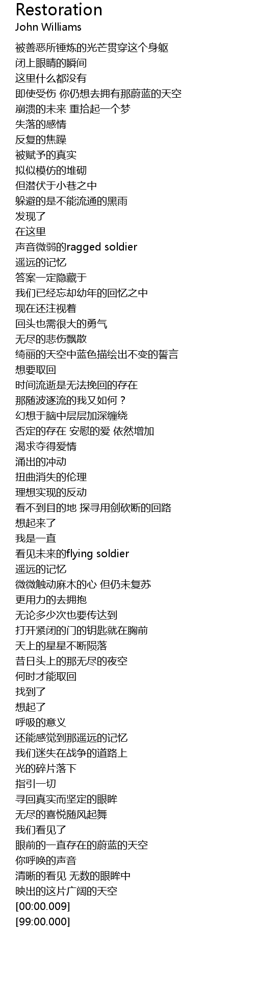 | [00:24.87] | 崩溃的未来 重拾起一个梦 |