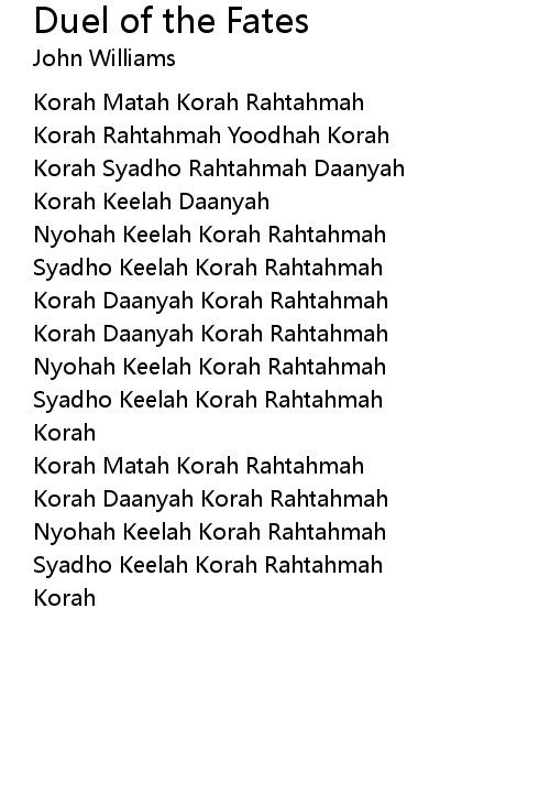 | Song | Duel of the Fates |