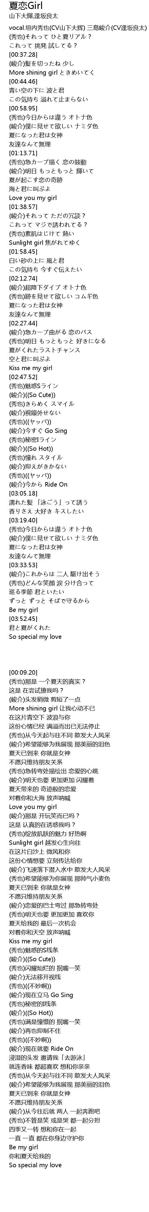 | [00:09.20] | vocal.垣内秀也(CV山下大辉) 三島峻介(CV逢坂良太) |