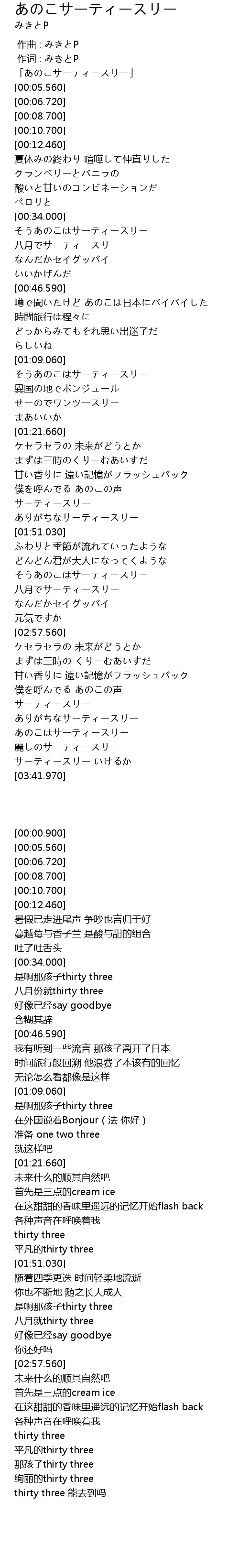 | [00:13.050] | 夏休みの終わり 喧嘩して仲直りした |