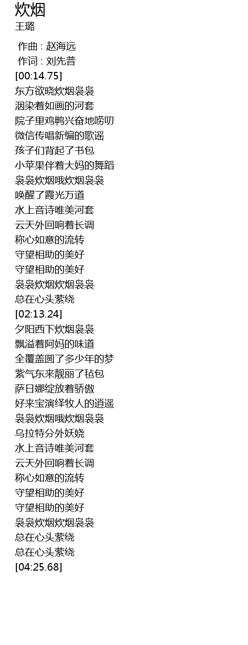 | [03:11.54] | 袅袅炊烟哦炊烟袅袅 |