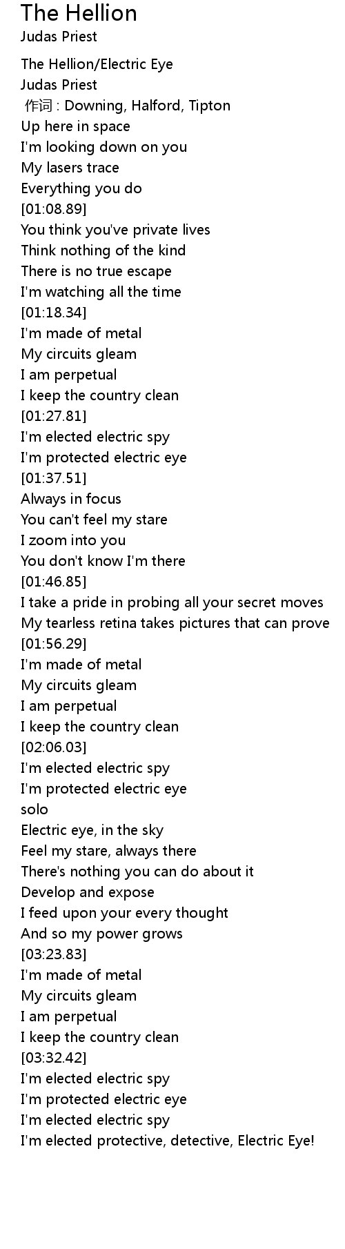 | [03:04.65] | Electric eye, in the sky |
