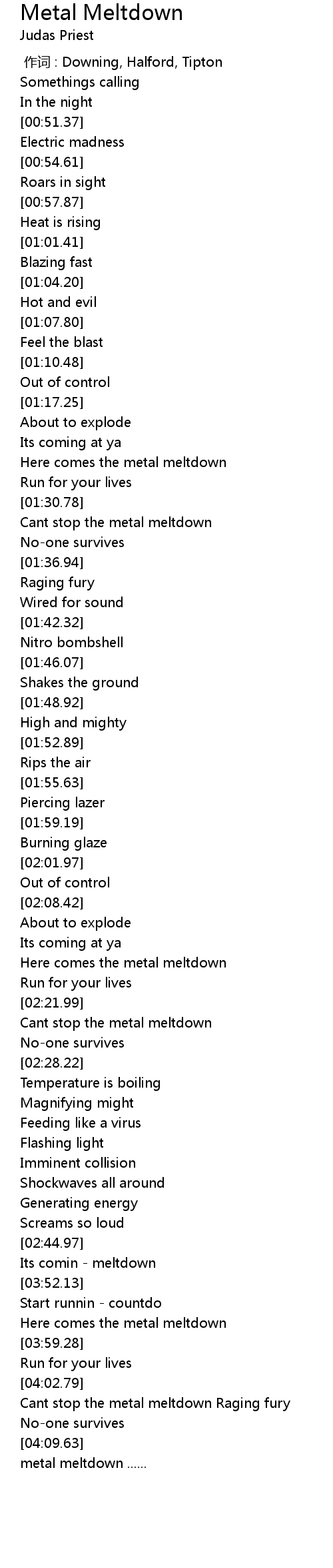 | [04:03.69] | Cant stop the metal meltdown Raging fury |