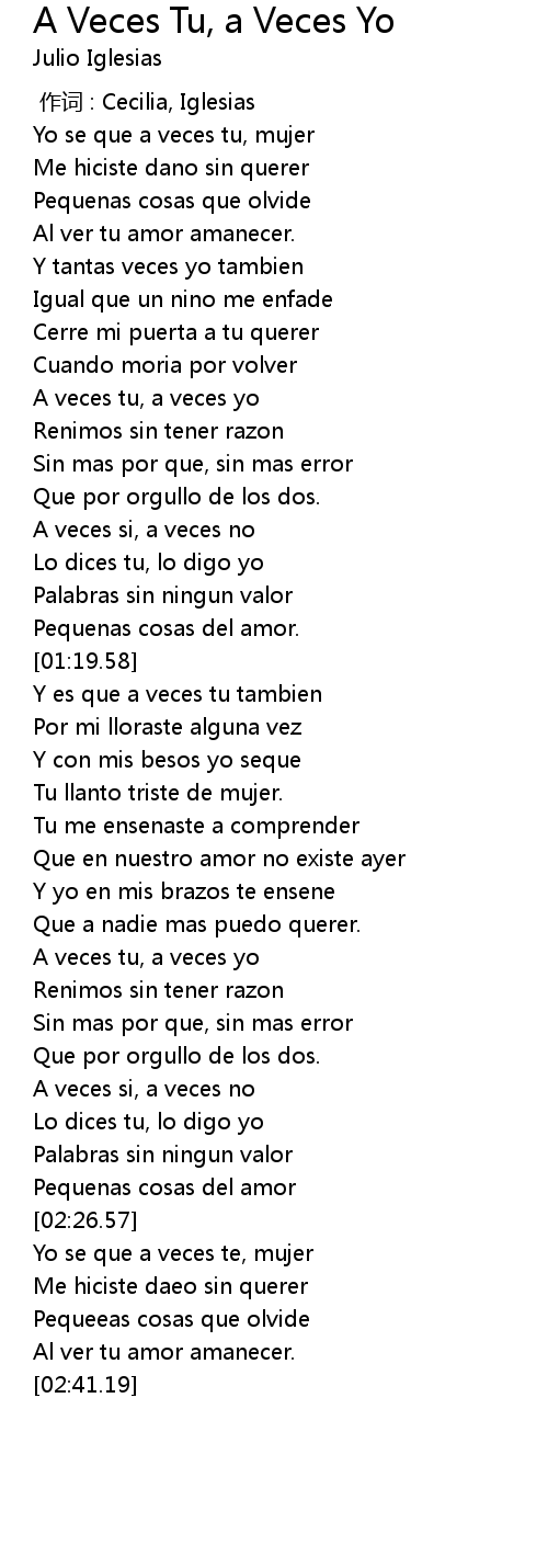 | [00:44.66] | A veces tu, a veces yo |
