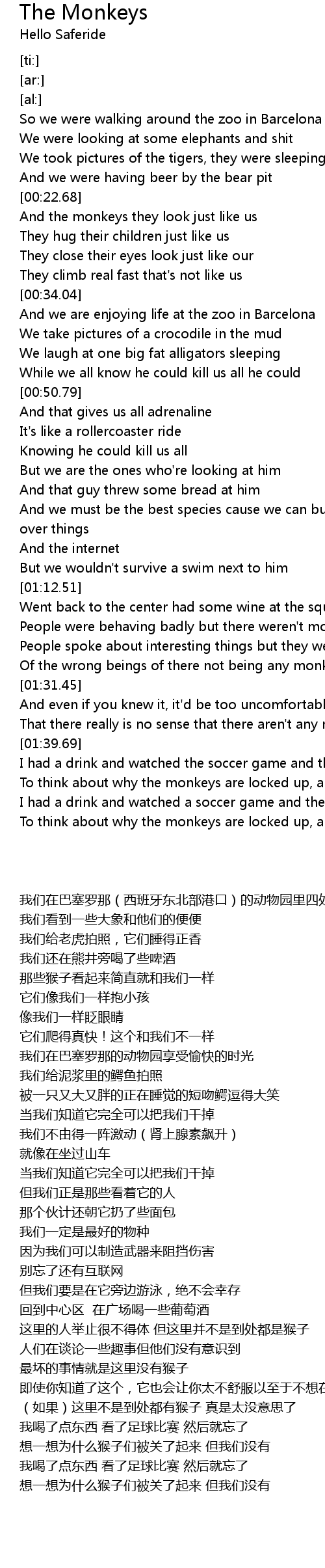 And the monkeys they look just like us |