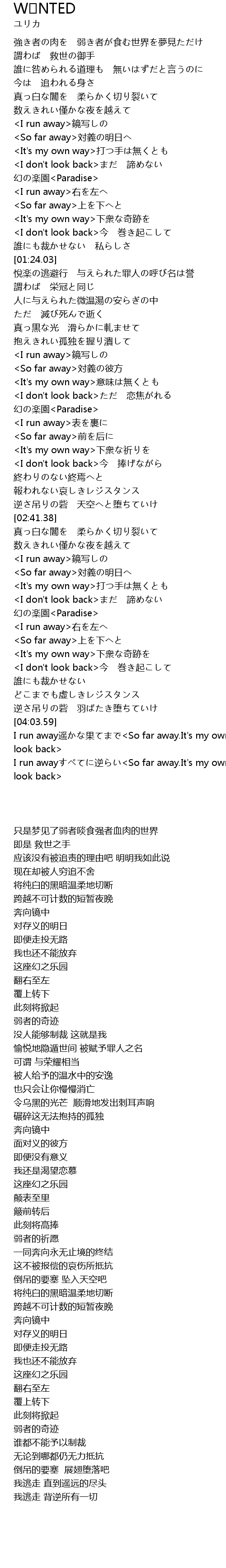 | [02:19.22] | <It's my own way>下衆な祈りを |
