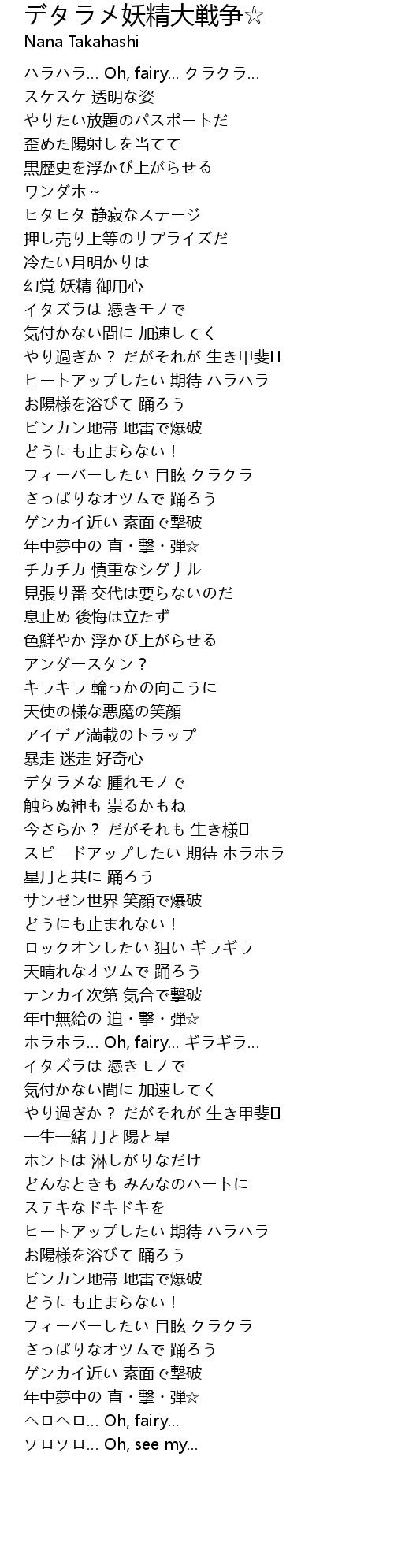 | [00:02.000] | ハラハラ… Oh, fairy... クラクラ… |