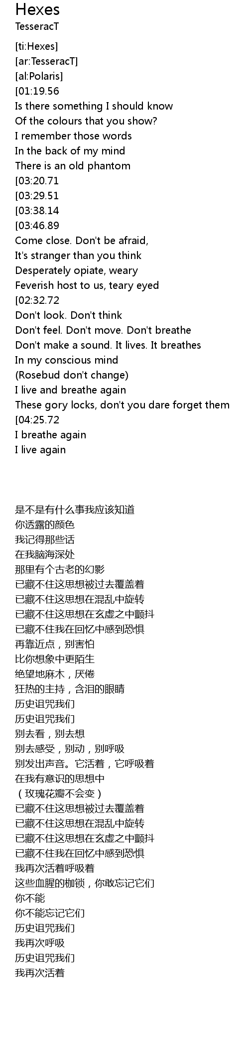 | [02:26.27][02:32.72][04:35.99][04:48.42] | History hexes us |