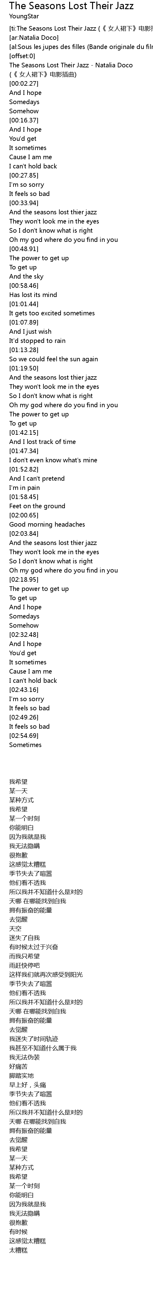 | [00:00.23] | The Seasons Lost Their Jazz - Natalia Doco |