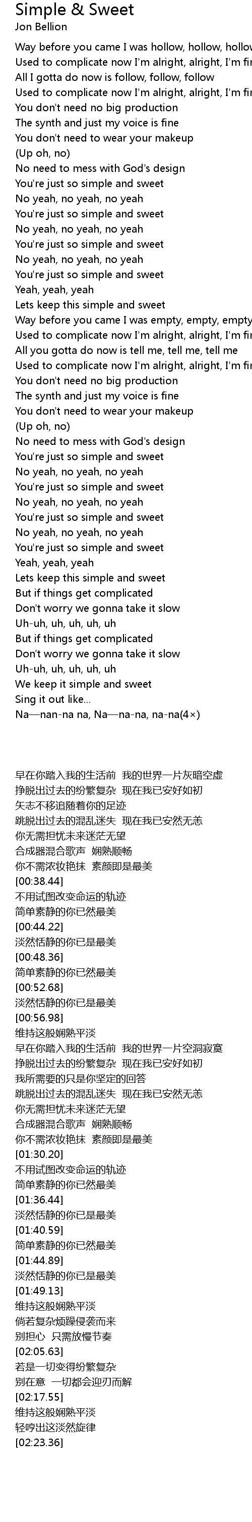 | [00:14.42] | Used to complicate now I' m alright, alright, I' m fine |
