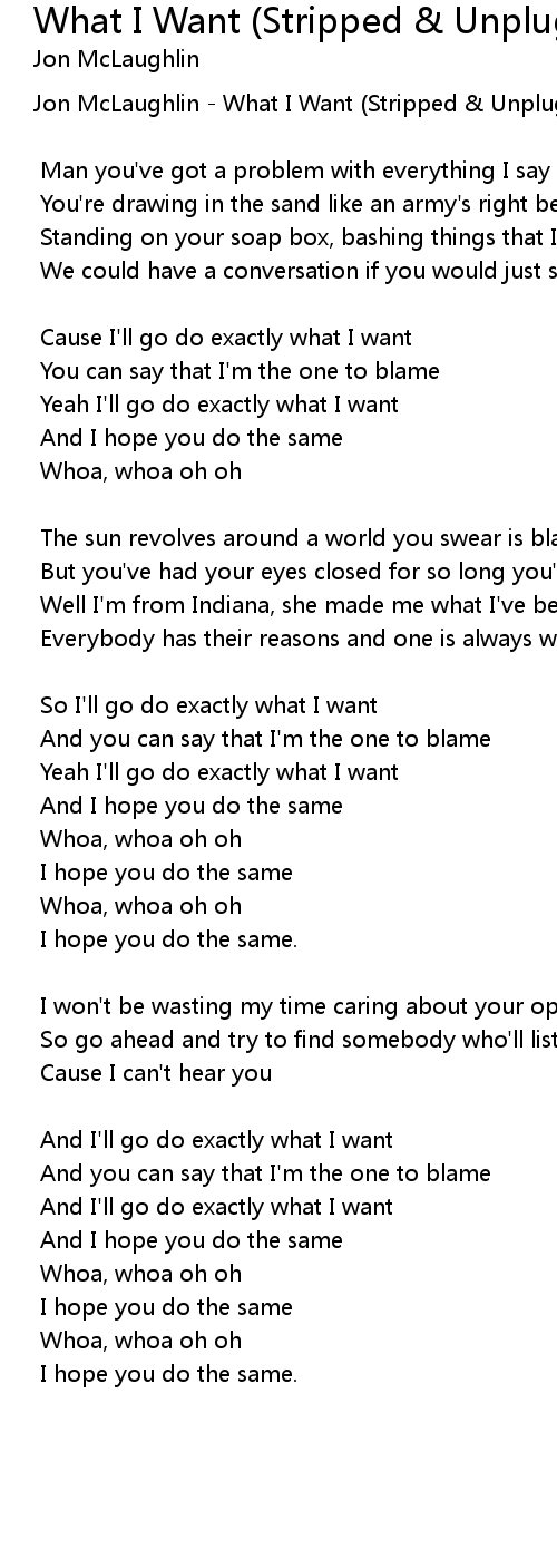 Jon McLaughlin - What I Want (Stripped & Unplugged) |