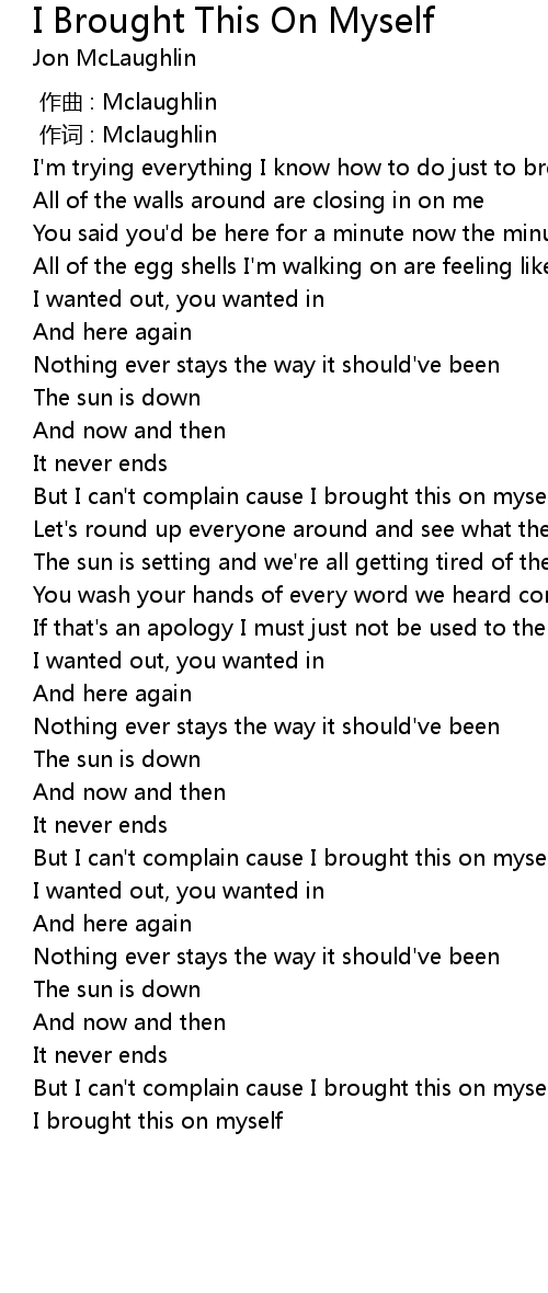 | [02:00.72] | But I can' t complain cause I brought this on myself |