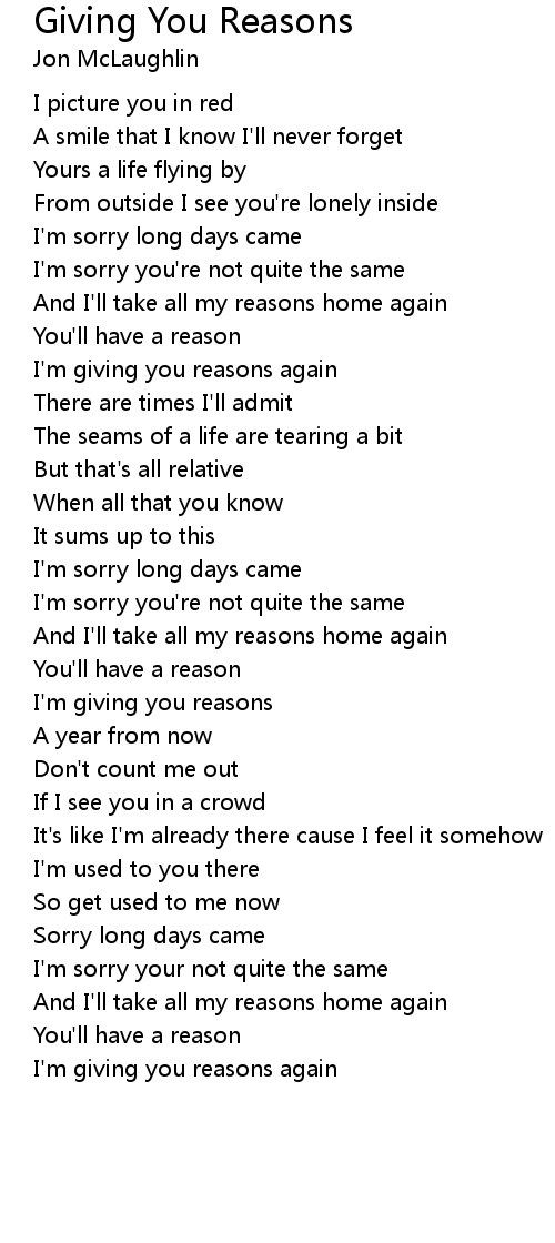 Song Giving You Reasons