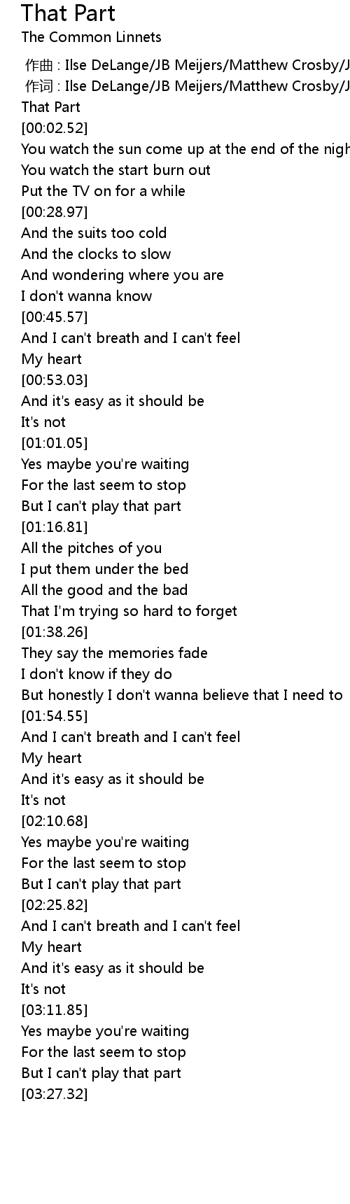 | [00:01.42] | That Part |