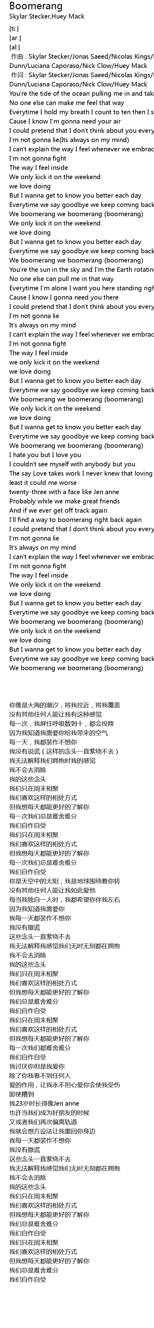 | [02:17.67] | We boomerang we boomerang boomerang |