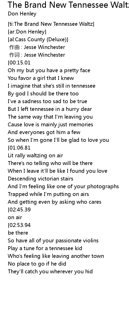 | [00:58.24][01:06.81] | At the brand new tennessee waltz |