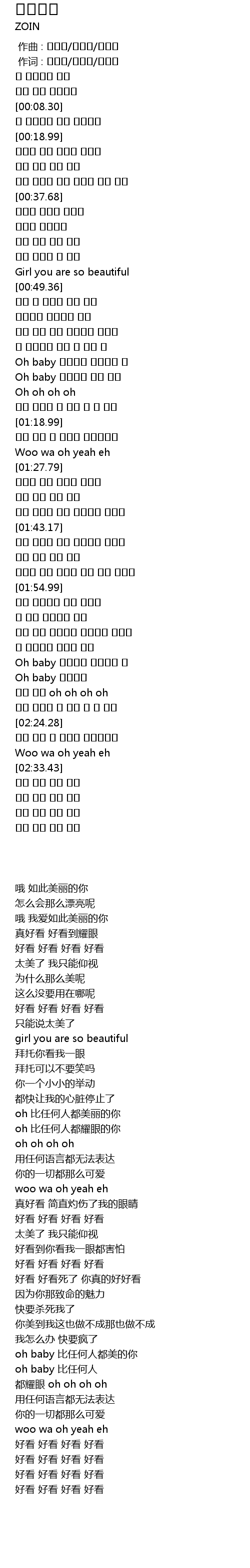 | [02:08.75] | Oh baby 누구보다 아름다워 서 |