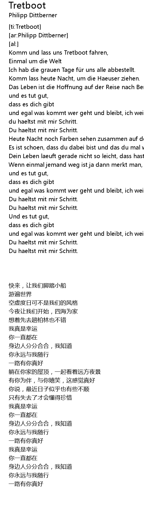 | [00:45.81] | Das Leben ist die Hoffnung auf der Reise nach Berlin |