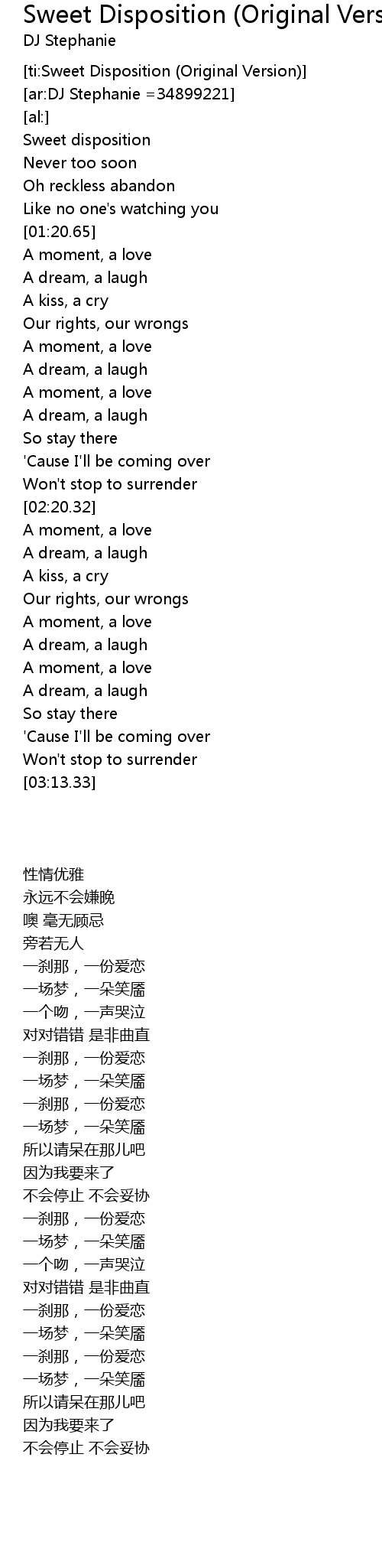 [ti:Sweet Disposition (Original Version)] |