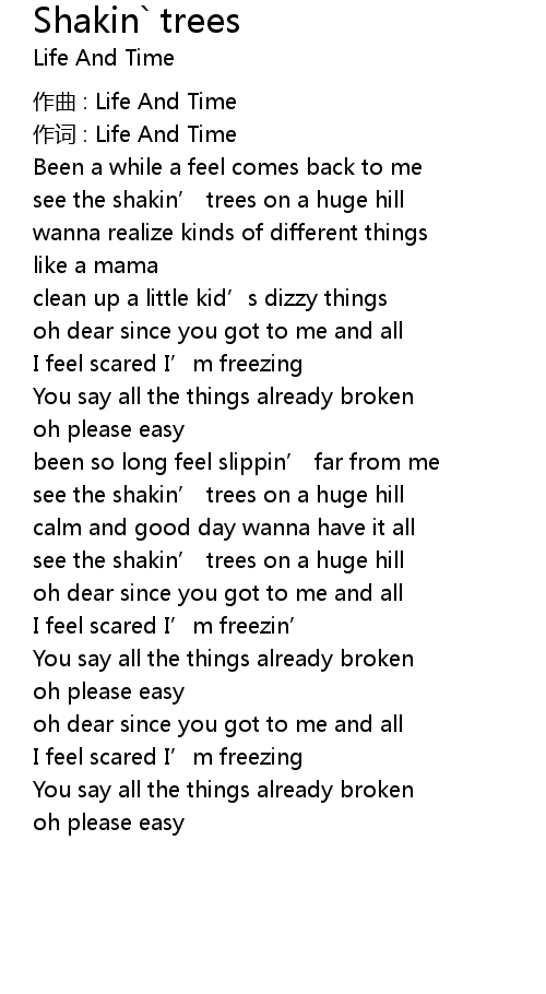 | Song | Shakin` trees |