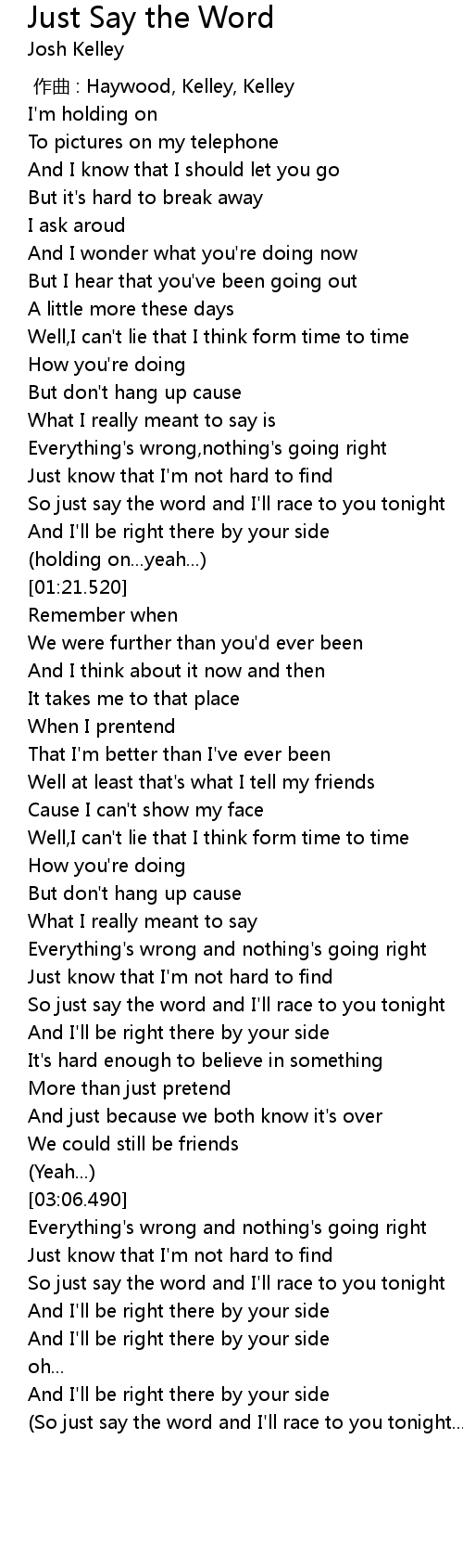 | [02:19.490] | So just say the word and I' ll race to you tonight |