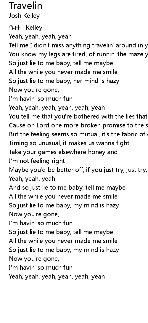 | Tell me I didn' t miss anything travelin' around in your head | |