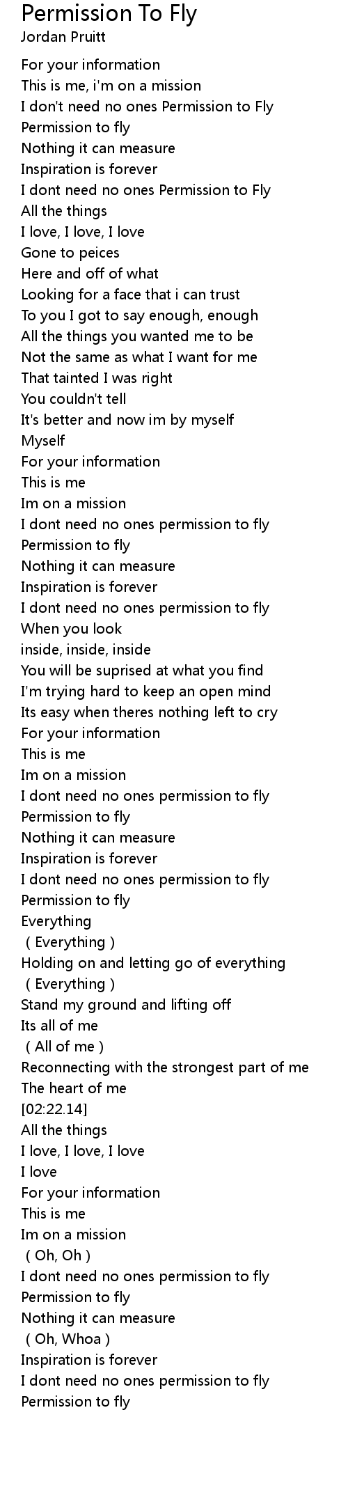 | [02:41.66] | Permission to fly |